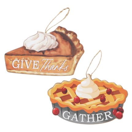 Thanksgiving Wooden Hanging Pies Wall Decorations, 2-ct. 6×3-in.