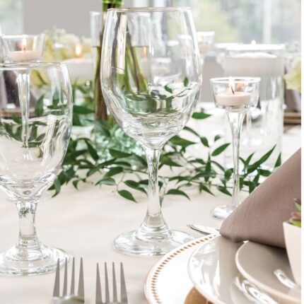 These elegant wine glasses will look perfect with any table setting. Brand-name goblets have sophisticated glass bowls perched atop tall, sturdy
