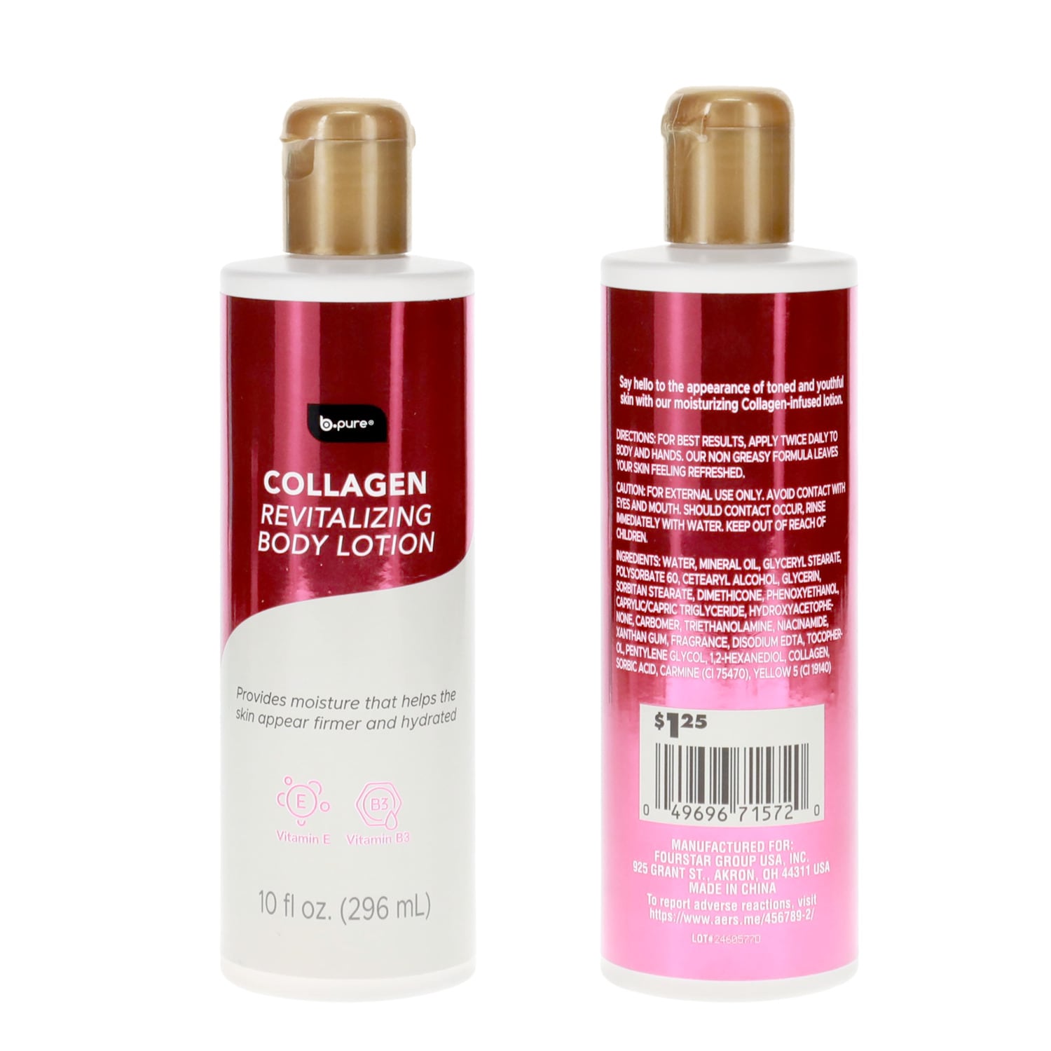 You can hydrate, revitalize, and moisturize your skin with B Pure Moisturizing Body Lotion. Rich in collagen, vitamin C, and hyaluronic acid, the body lotion leaves your skin feeling fresh and radiant. For optimal results, apply the cream after a hot shower. Apply the body lotion when you feel dry, or just before bed, to refresh your skin overnight. Avoid contact with eyes or mouth.