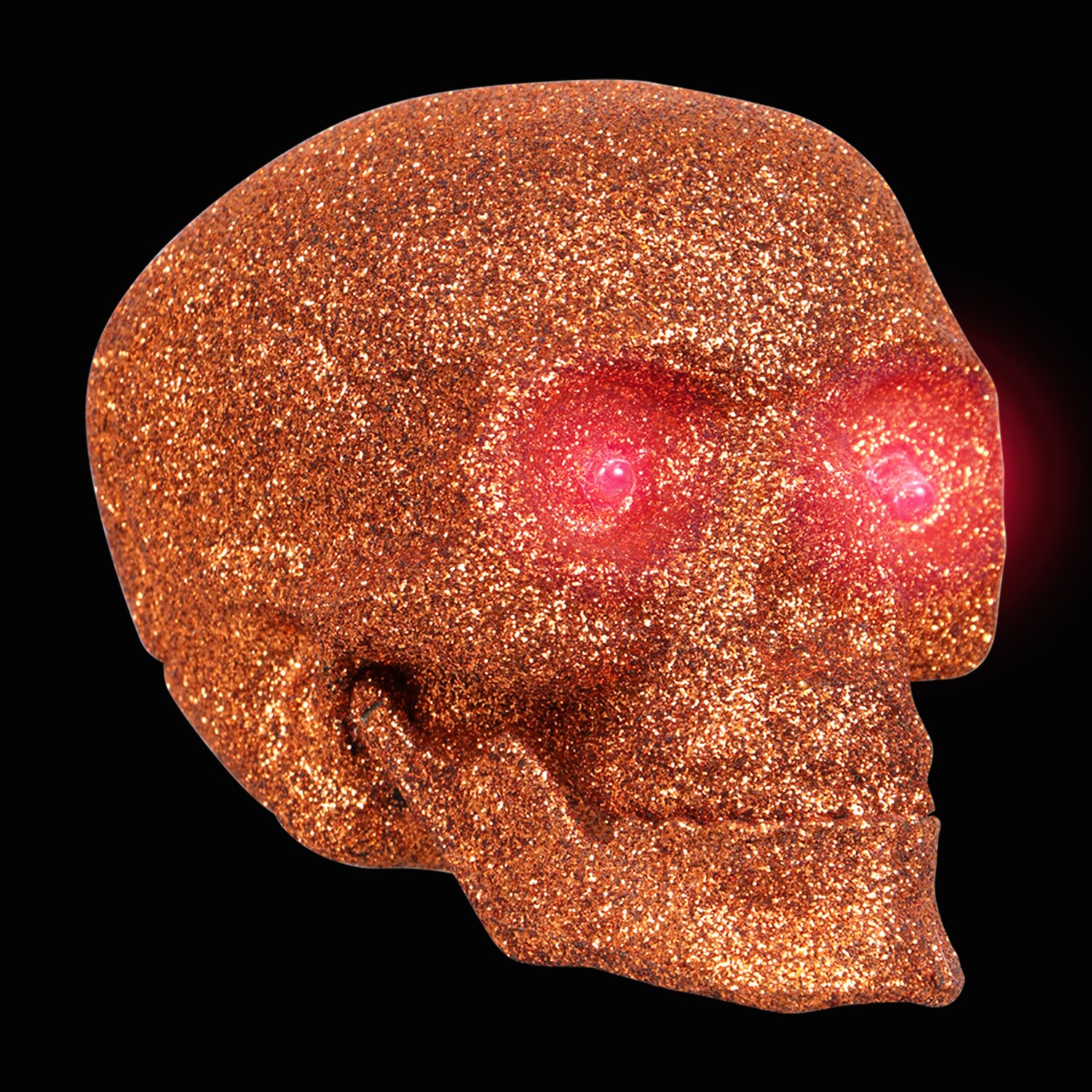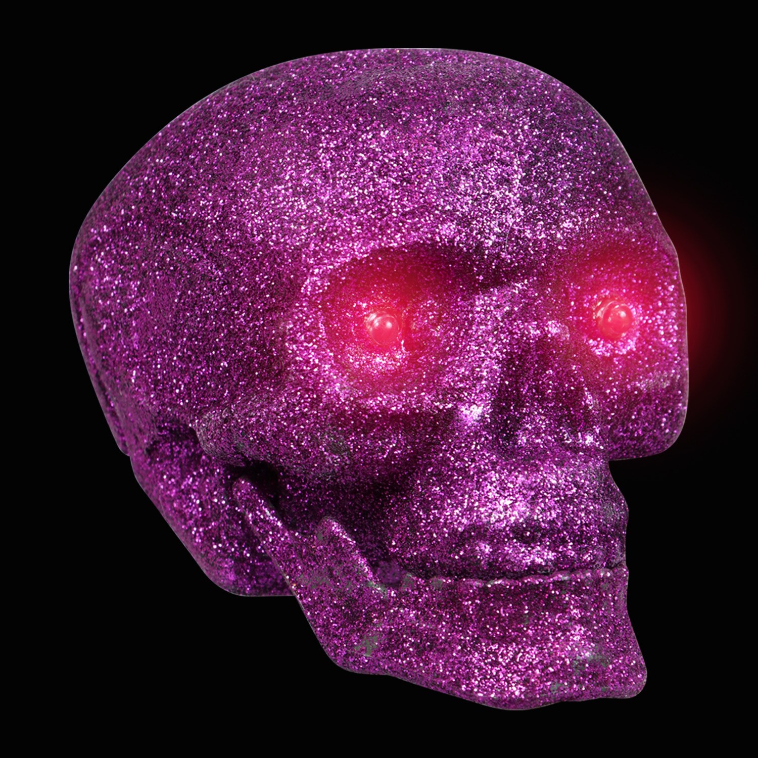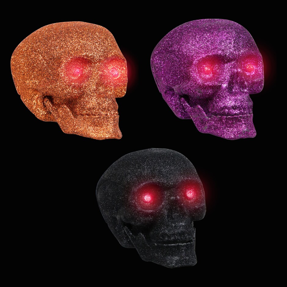 Glitter Halloween Skulls with LED Glowing Eyes, 4.75×3.875×3.5 in.