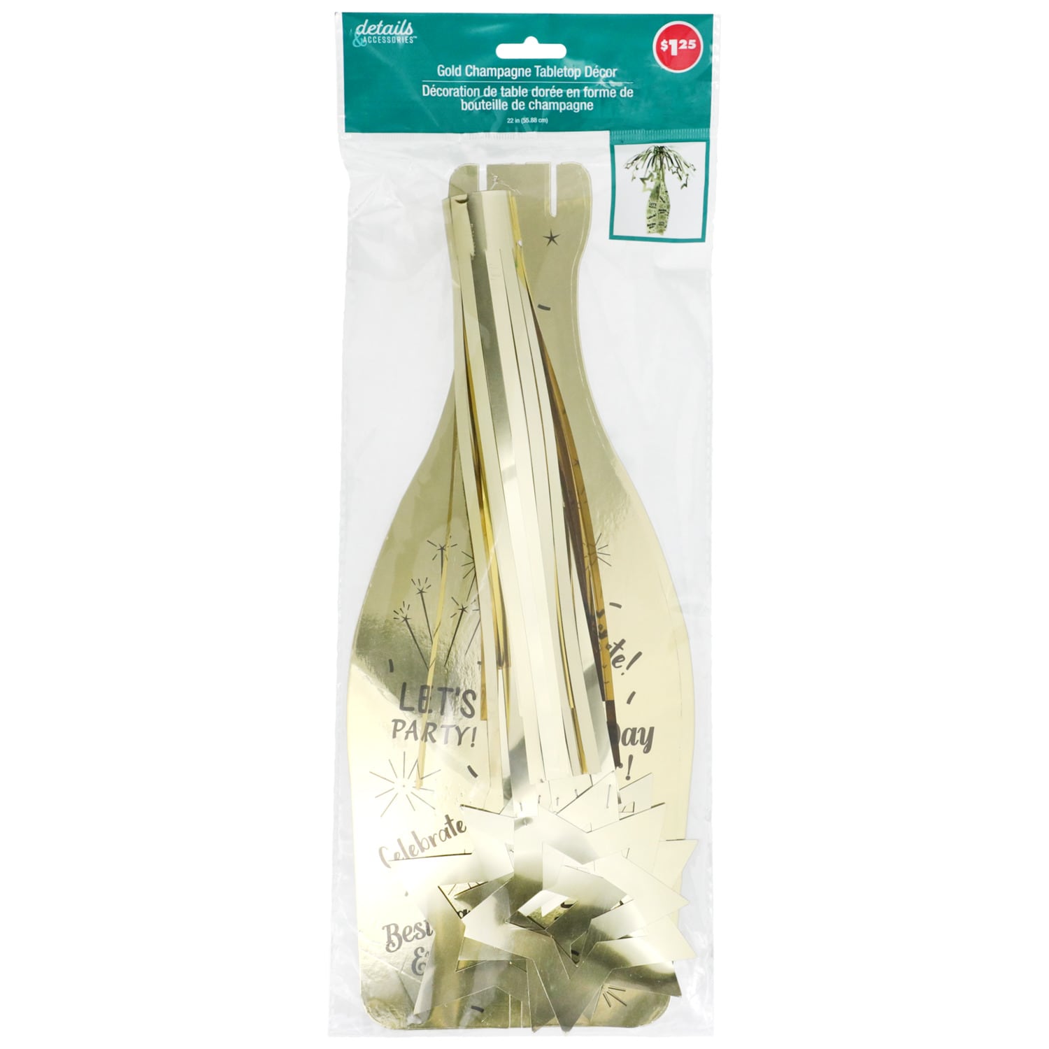 Celebrate a special occasion with this Gold Champagne Bottle Tabletop Décor. This tabletop décor is perfect for your next event. Decorate bottles and centerpieces for birthdays, graduations, promotions, anniversaries, and more!