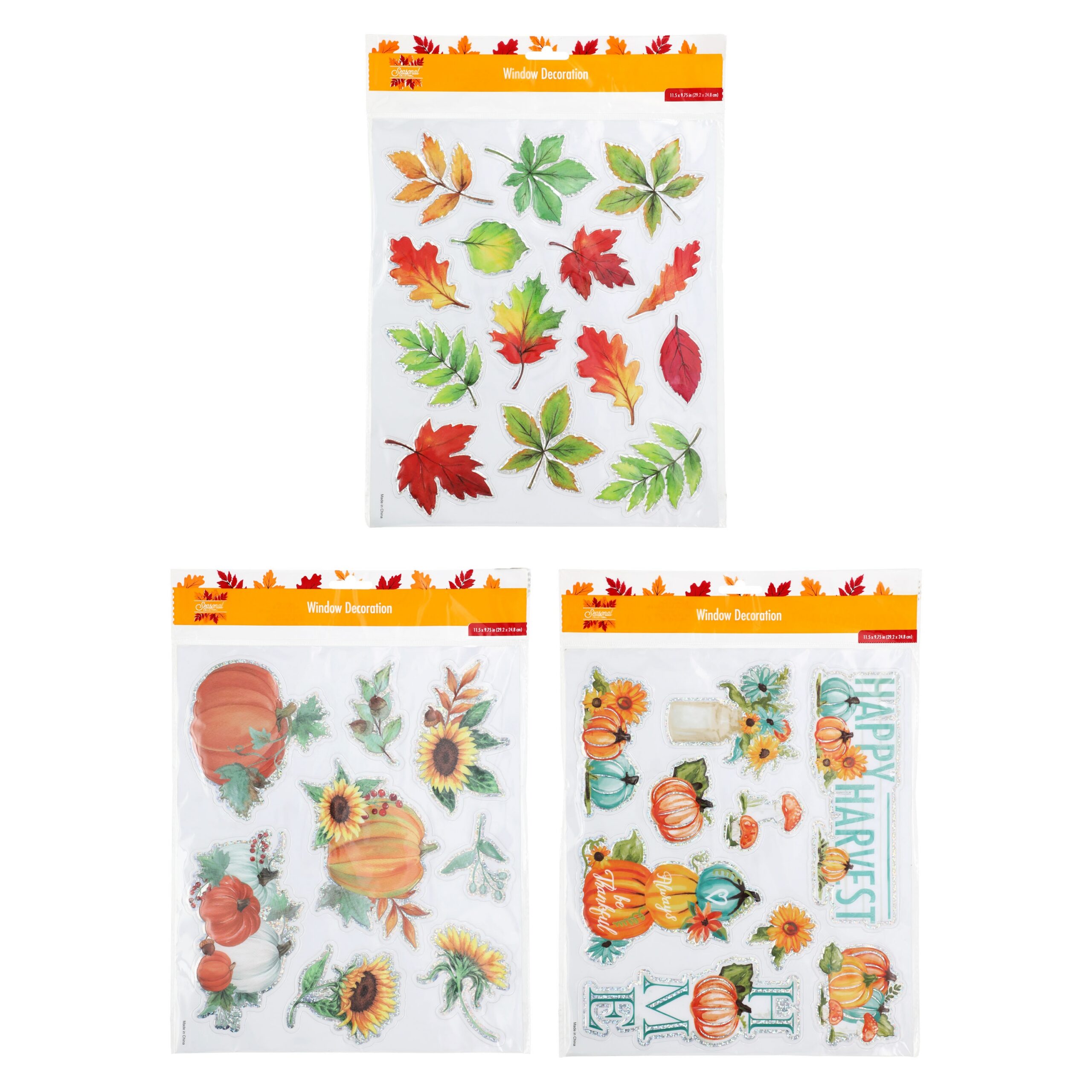 Seasonal Collection Fall Themed Embossed Hologram Window Stickers, 11.9×12.4 in.