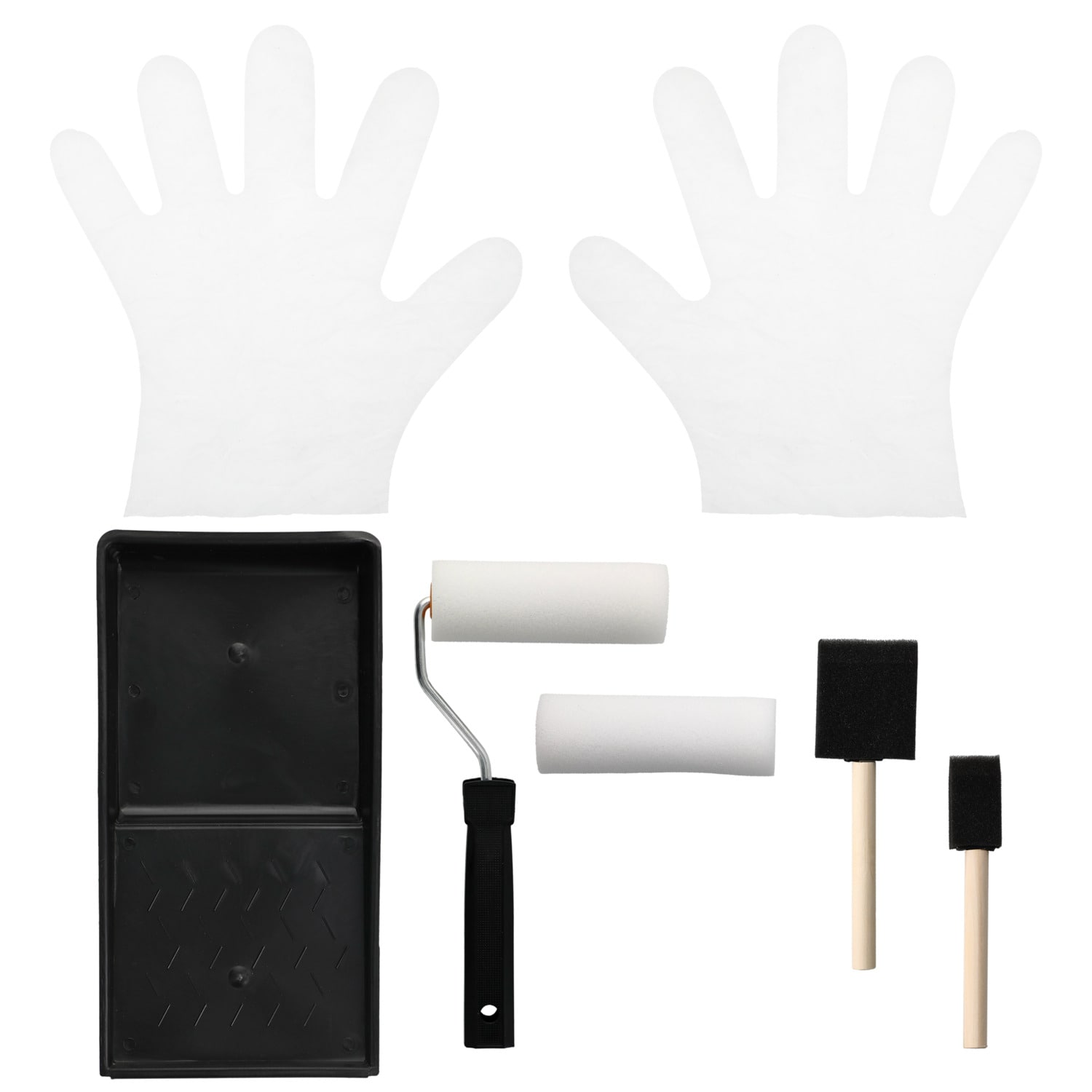 Make sure you have all the necessary tools before you start your next painting project! These Tool Bench Hardware sets provide you with everything you need to get the job done right. Sturdy plastic paint trays feature deep-well reservoirs that let you coat your included rollers and brushes with ease. You can even keep your hands clean with the included pair of plastic disposable gloves. A must-have for home remodeling, decorating, painters, carpenters, and more. Each 5-pc. Kit contains one paint tray, one 2.5-in roller frame, one 4-in roller pad, one 1.25-in brush, and one pair of disposable plastic gloves. A professional job requires professional tools, so choose Tool Bench Hardware Complete Painting Sets!